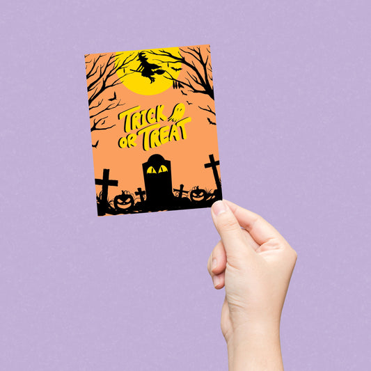 Trick Or Treat Creepy Cemetery Halloween Greeting Card