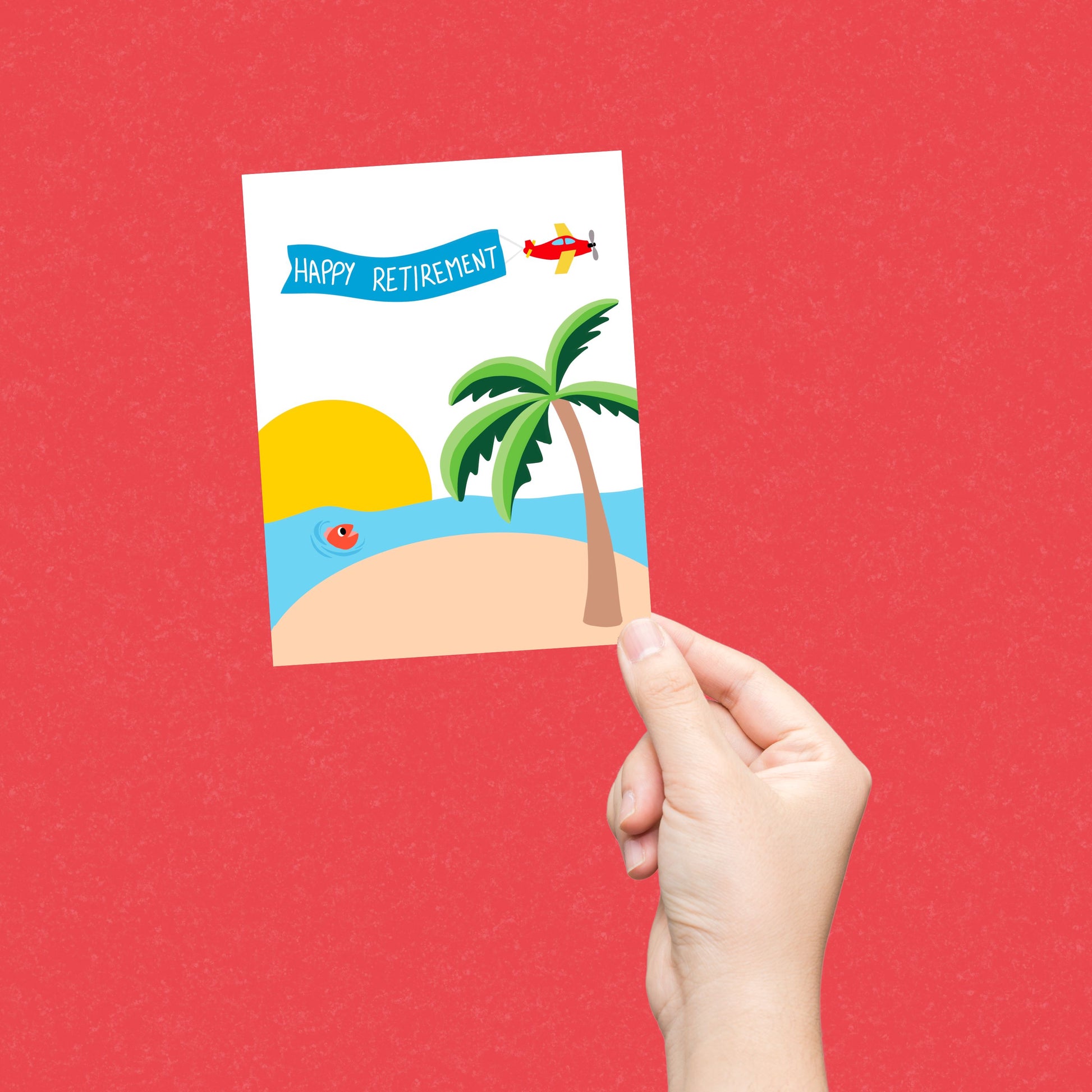 Celebrate a well-earned retirement with our Happy Retirement greeting card! Featuring an original illustration of a serene island, a bright sun, and a cheerful airplane, this card is perfect for sending off your favorite retiree in style. Whether they’re dreaming of sunny beaches or just endless relaxation, this card captures the essence of retirement bliss. Made with high-quality cardstock and vibrant colors, it’s the ideal way to bid farewell to the 9-to-5 grind. Add a dash of humor to their big milestone and make their transition to retirement unforgettable with this delightful card!